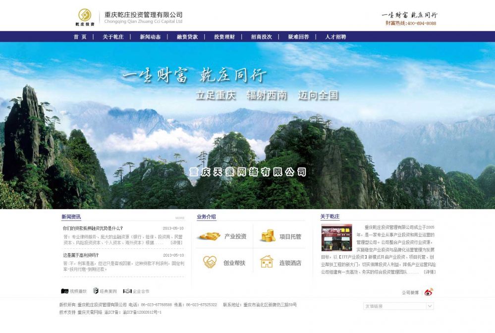 重慶乾莊投資管理有限公司成立于2005年,是一家專業(yè)從事產(chǎn)業(yè)投資和商業(yè)運營的管理型公司。