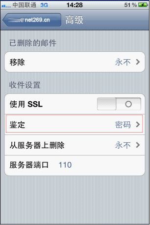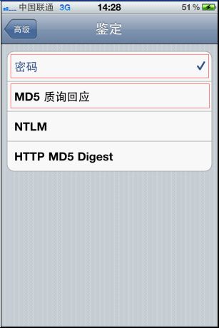 八、iPhone雖然默認(rèn)的鑒定方式是“密碼”,但是實(shí)際上系統(tǒng)中使用apop方式,所以一般用戶設(shè)定好以后無(wú)法使用,可以先改變一種鑒定方式(如MD5等)并確定,再選回“密碼”方式,此時(shí)的iPhone就可以正常使用了。