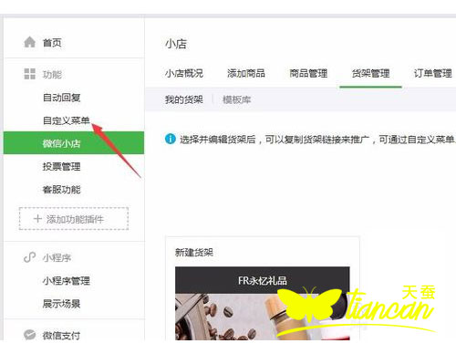 備注:微信小店中有個貨架功能,可以自定義添加多個不同的貨架,一個貨架相當(dāng)于一個店鋪的首頁。即來開通了微信小店大家都想通過公眾號的導(dǎo)航菜單能夠直接訪問到我們的小店,但系統(tǒng)又沒有直接可以開通就會顯示等功能,需要我們手動去添加的,下面我們就來介紹一下,微信公眾平臺的自定義菜單上如何連接微信小店