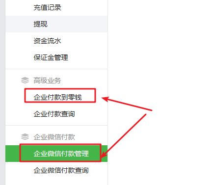 只需在微信支付商戶平臺,產(chǎn)品中心,開通【企業(yè)微信付款】與【企業(yè)付款到零錢】,如下圖所示: