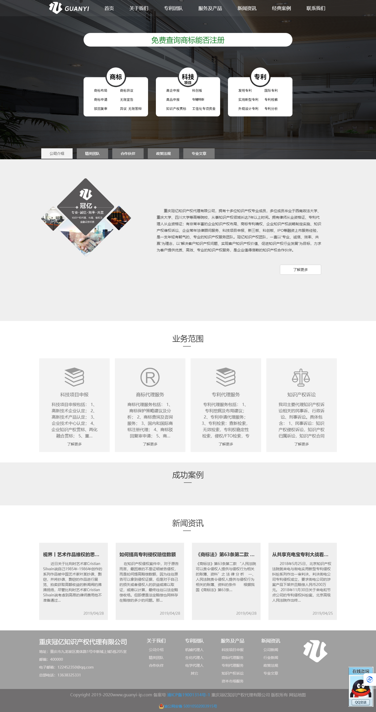 天蠶 重慶網(wǎng)絡公司編制語:重慶冠億知識產(chǎn)權(quán)代理有限公司,擁有十多位知識產(chǎn)權(quán)專業(yè)成員,多位成員畢業(yè)于西南政法大學、重慶大學、四川大學等高等院校,從事知識產(chǎn)權(quán)領(lǐng)域長達7年以上時間。擁有律師從業(yè)資格證、專利代理人從業(yè)資格證;有非常豐富的企業(yè)知識產(chǎn)權(quán)布局、商標專利確權(quán)、企業(yè)知識產(chǎn)權(quán)戰(zhàn)略制定實施、知識產(chǎn)權(quán)維權(quán)訴訟、企業(yè)常年法律顧問服務、科技項目申報、新三板、科創(chuàng)板、IPO等融資上市服務經(jīng)驗,是一支年輕有朝氣的、專業(yè)的知識產(chǎn)權(quán)服務團隊。冠億知識產(chǎn)權(quán)團隊,一直以“專業(yè)、誠信、效率、共贏”為理念,以“解決客戶知識產(chǎn)權(quán)問題、實現(xiàn)客戶知識產(chǎn)權(quán)價值、促進知識產(chǎn)權(quán)行業(yè)發(fā)展”為目標,力求為客戶提供優(yōu)質(zhì)、高效、專業(yè)的知識產(chǎn)權(quán)服務,是企業(yè)值得信賴的知識產(chǎn)權(quán)合作伙伴。